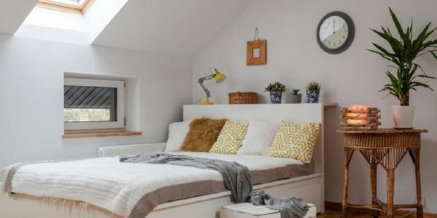 A slanted wall bedroom doesn’t have to be just for sleeping. Depending on the size, you can carve out extra functions:
